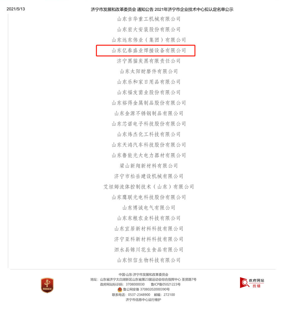 2021年濟(jì)寧市企業(yè)技術(shù)中心擬認(rèn)定名單公示
